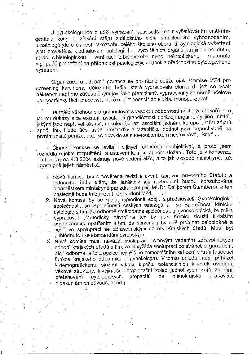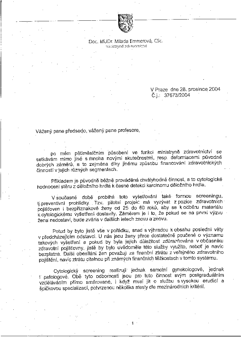 Přinášíme Vám kopii textu ministryně Emmerové, který rozeslala prezidentovi ČLK prof. Blahošovi, ředitelům nemocnic, ředitelům pojišťoven a odborným společnostem, včetně naší, a vyžádala si odpověď Výboru společnosti patologů.