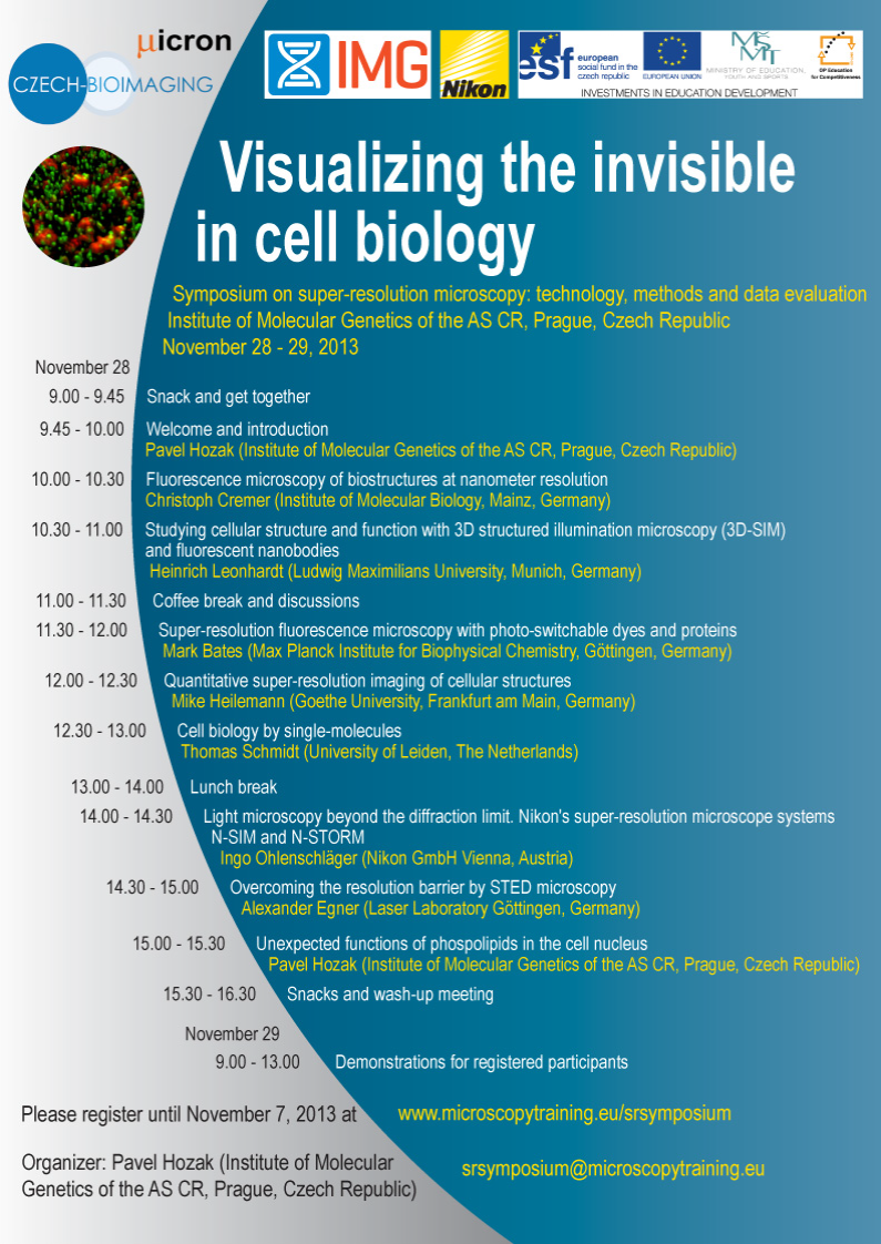 Symposium on super-resolution microscopy: technology, methods and data evaluation, Institute of Molecular Genetics of the AS CR, Prague, November 28 - 29, 2013